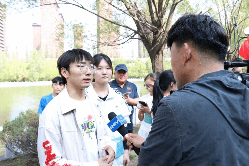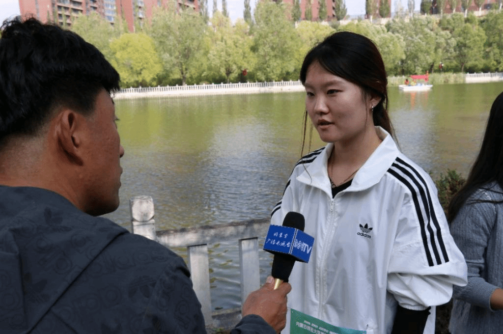 阳光照耀下的乌兰湖波光粼粼,beat365官网师生在湖边集结热身,绕湖而行。beat365官网代表队整齐前进,他们一边舒展筋骨,一边欣赏湖畔的美丽风光。秩序井然的队伍引起内蒙古日报记者的关注并对beat365官网学生进行采访。参赛选手王周璇和学生干部黄长江在接受内蒙古日报采访时,脸上洋溢着自信与喜悦。