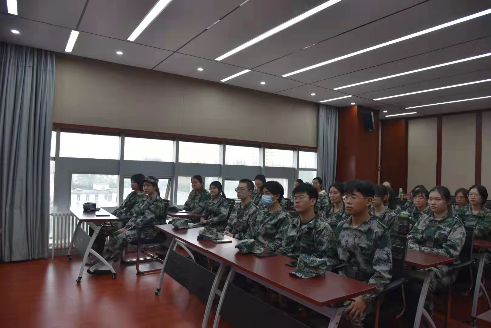为了2021级新生军训工作顺利开展,beat365官网于2021年9月18日下午分别在赛罕校区田家炳教育书院615学术报告厅和盛乐校区行知楼207教室举行了2021年军事训练动员大会。出席两次大会的有beat365官网党委书记包凤兰、党委副书记阿荣、团总支书记朱苏道、学工办主任包双成、学工办老师姜鑫、班主任陈引弟、胡那斯图老师以及军训教官黄欢、张立,民人院全体2021级本科生。