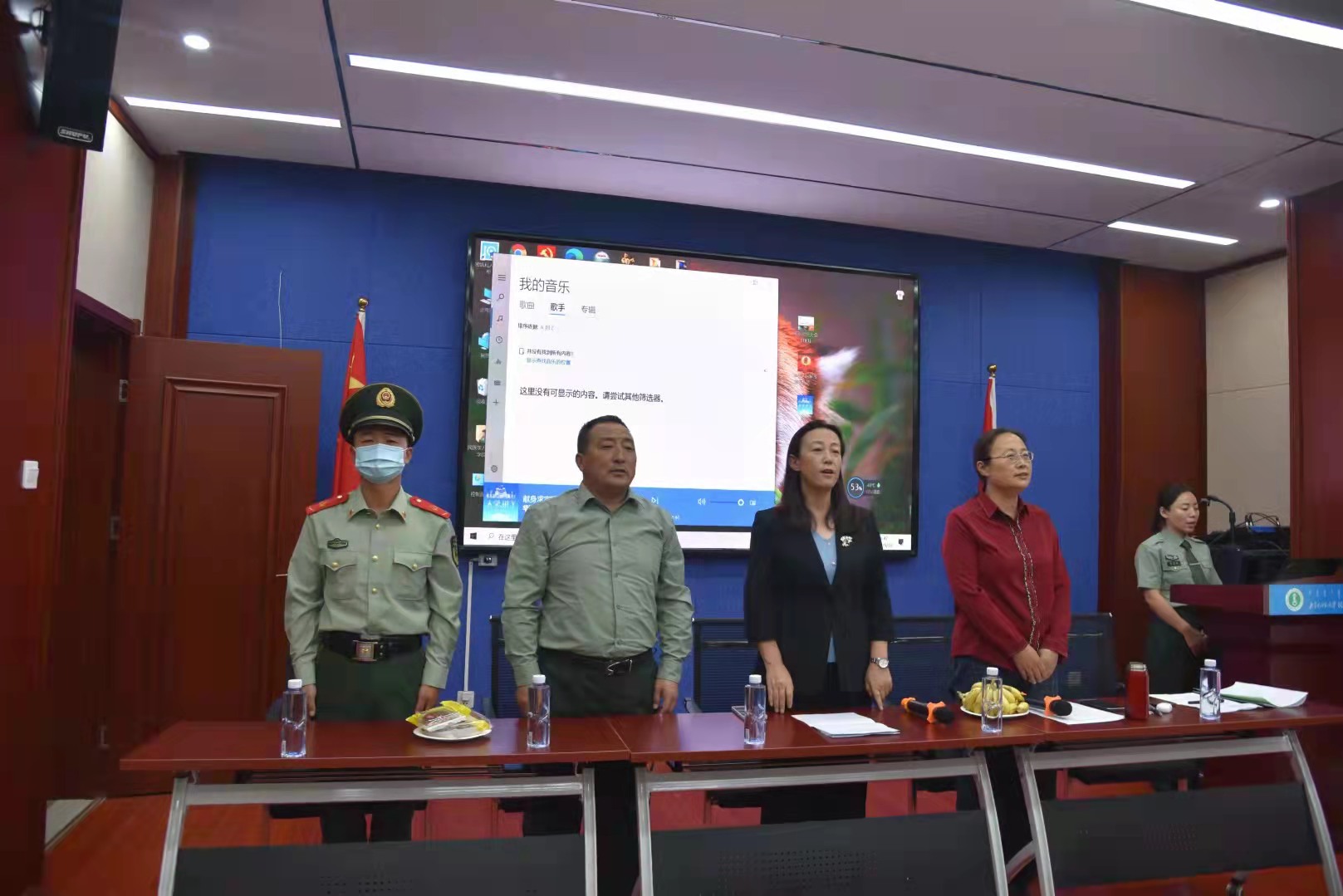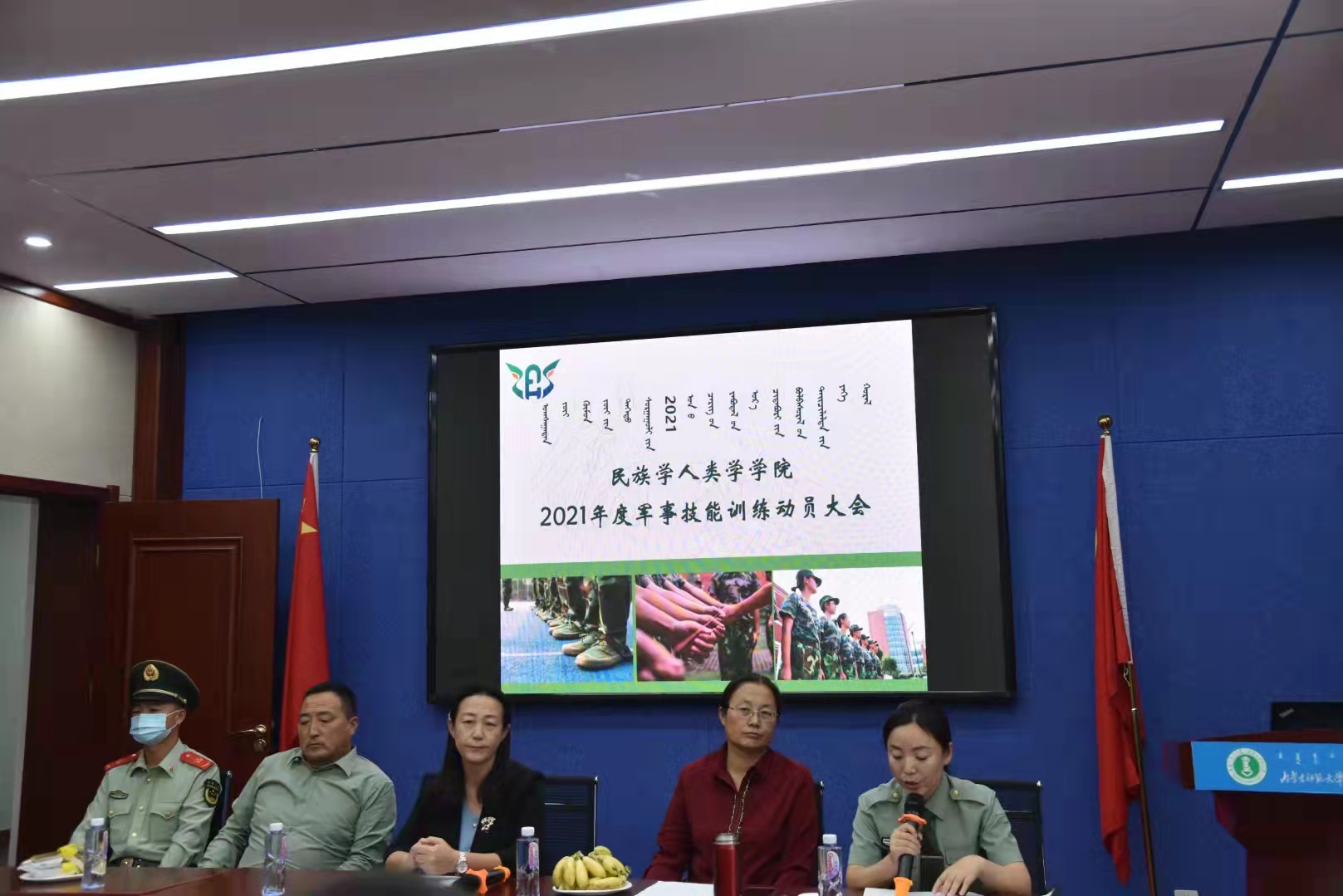 大会第二项 在赛罕校区阿荣副书记、在盛乐校区包双成主任向大家介绍了参与本次大会领导和教官。
