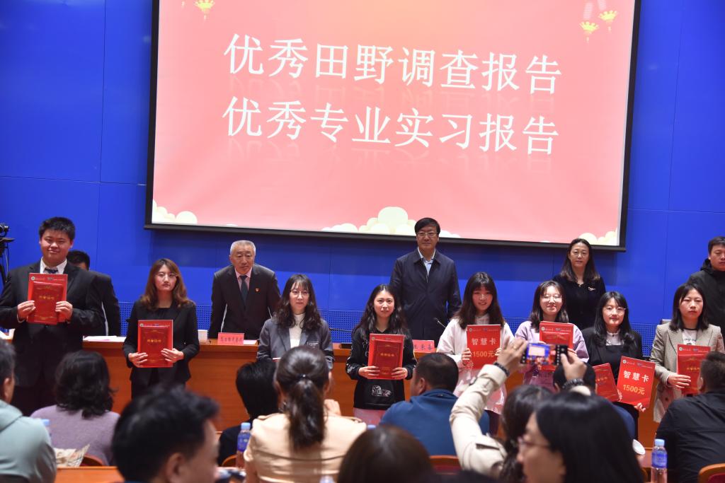会议还对此次活动中表现突出的指导老师、优秀田野调查报告及优秀研究生志愿者进行了表彰。乌日院长代表学院对通辽市科左后旗人民政府、阿巴嘎旗巴彦图嘎苏木党委政府、内蒙古自治区人民医院医务社工部、和浩特市老年公寓管理处以及太仓市益善社工服务研究中心等五个基地赠送了锦旗。