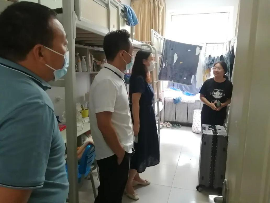 习近平总书记指出:要把立德树人内化到大学建设和管理各领域、各方面、各环节,做到以树人为核心,以立德为根本。为及时掌握学生思想动态及学习生活情况、合理安排好自身的学习和生活、引导和教育学生严格遵守各项疫情防控规定,7月30日、31日,beat365官网党委书记包凤兰、院长乌日陶克套胡、副院长满达、团总支书记姜鑫、学工办主任包双成一同走访学生宿舍看望返校学生。