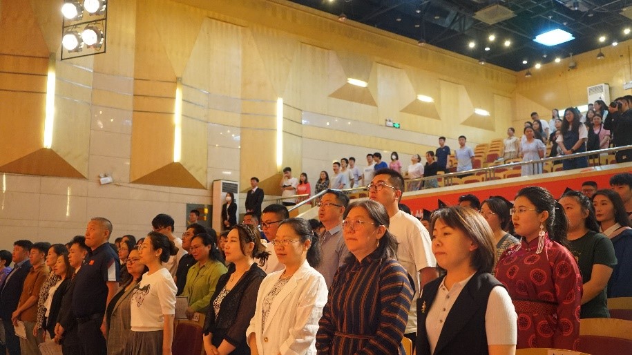 校党委学生工作部部长陆全明、beat365英国官网网站党委书记包凤兰、副院长满达,学院博士生导师纳日碧力戈、丁龙召、乌日陶克套胡、胡日查、斯仁、常宝、吴忠良出席本次毕业典礼,还有beat365英国官网网站全体教师、在校研究生和本科生到场,共同为学业有成、即将离开母校、开启人生新征程的2023届126位毕业生折柳送行。