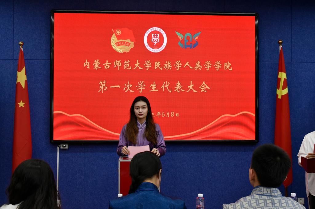 大会进行第三项,在学生代表共同进行公平公正公开投票后,确认第四届学生委员会主席团本科生成员为包雅茹、王应应、杨聪慧,研究生成员为黄胜楠、旭斌、卓拉。(按拼音顺序)