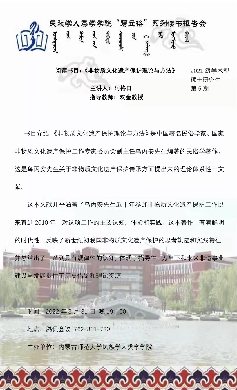 内容简介:《非物质文化遗产保护理论与方法》是由中国著名民俗学家、国家非物质文化遗产保护工作专家委员会副主任乌丙安先生的著作。
