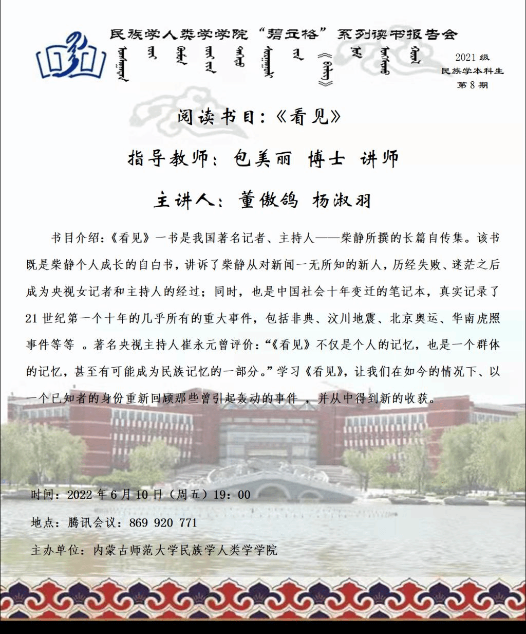 beat365英国官网网站“碧立格”系列读书报告会预告 2021级学术型硕士研究生 第8期