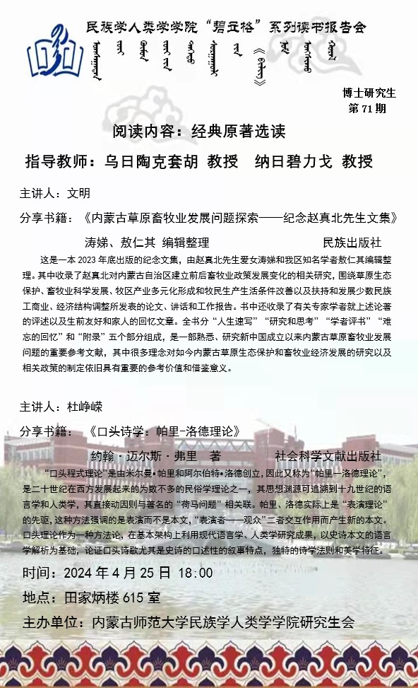 beat365英国官网网站“碧立格”系列读书报告会预告博士研究生第71期
