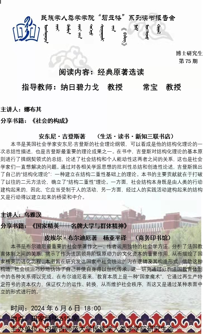 beat365英国官网网站“碧立格”系列读书报告会预告博士研究生第75期