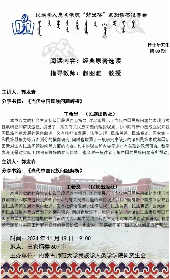 beat365英国官网网站“碧立格”系列读书报告会预告博士研究生第80期