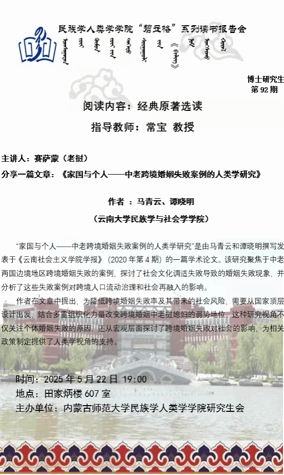 beat365英国官网网站“碧立格”系列读书报告会预告博士研究生第92期