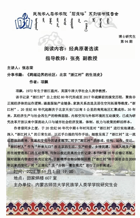 beat365英国官网网站“碧立格”系列读书报告会预告博士研究生第94期