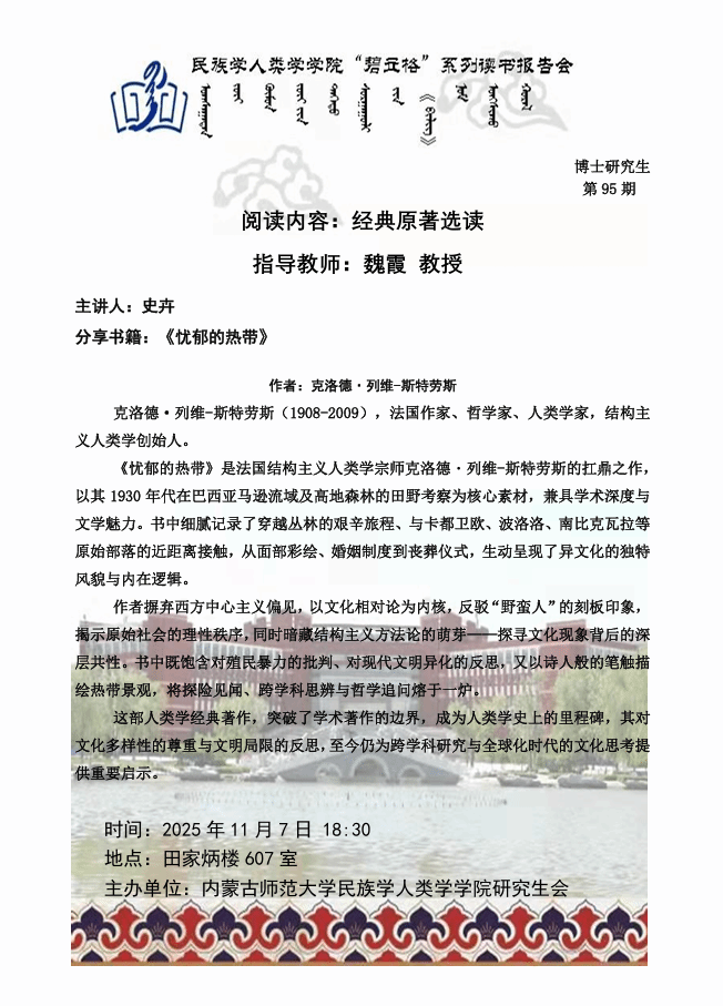 beat365英国官网网站“碧立格”系列读书报告会预告博士研究生第95期