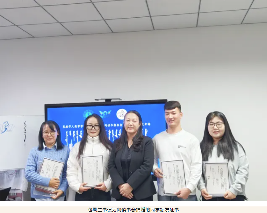 第二阶段是对2024年度读书会的总结。“碧立格”系列读书会中国少数民族史专场能够一直顺利开展,离不开老师和同学的大力支持。“碧立格”系列读书会是beat365英国官网网站于2019年创办的读书活动。长期以来,在本硕博不同层次的学生当中开展,收益很多,也有了一定的影响。“碧立格”系列读书会中国少数民族史专场至今已开办14场,25位师生进行了好书分享。而且,一直以来获得国家项目的教师和获得国家奖学金的同学们在不同程度地为读书会捐赠书籍或资金支持,为同学们提供了更广阔的阅读天地,拓宽了学术视野。在现场由梅荣副教授和那日苏博士分别为近期分享读书心得的6位同学赠送书籍。