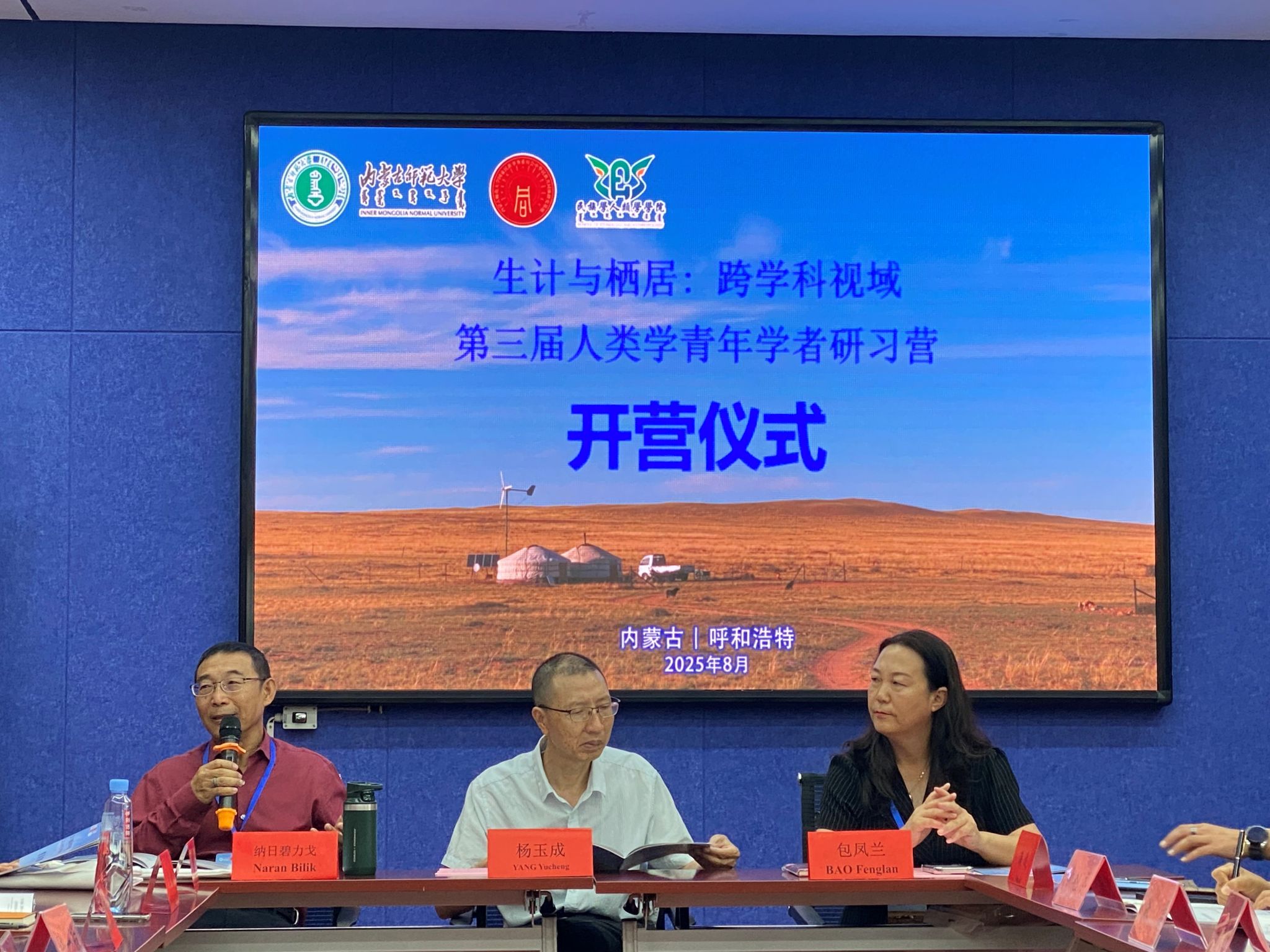 811日至12日的“青年研讨营”中,营员们基于田野调查资料,围绕研习营议题,进行了热烈研讨与成果汇报,现场思想碰撞激烈。研讨围绕四大核心板块展开,呈现鲜明的跨学科融合特征。一是经济人类学焦点:西南民族大学民族学专业博士生刘聪、兰州大学中华民族学专业博士生吕珊鹏、中央民族大学民族学专业博士生班马次仁聚焦草原牧区生计的深刻变迁,剖析合作社等组织形式的实践创新及其背后的互惠分配逻辑;上海大学人类学专业博士生林亚男探讨地方特色产业的形成机理,强调“地话”中自然、文化与社会因素的共同作用;beat365官网博士生艳霞寻求小农经济与游牧文化在现代化冲击下的对话与互鉴可能。二是建筑人类学焦点:新疆师范大学民族学系副教授申艳冬对牧营地、蒙古包、合作社厂房等具体建筑形态进行深入调研与批判性反思,关注其承载的社会文化意涵;中山大学民俗学专业博士生庄钧然揭示现代性对牧居空间的重塑;中央民族大学民俗学博士生逯宇超以希热庙等案例展现空间如何嵌入并影响生计模式;beat365官网博士生侯朝克探究边疆民族地区住居形态的现代转型及其社会文化动因。三是栖居环境焦点:中央民族大学民族学专业博士生王晓慧直面干旱等环境“失序” 对牧民生计造成的严峻困境;复旦大学博士后刘炫麟以乌拉特中旗为例,深入分析当代游牧生计中的“栖居”策略与适应;美国匹兹堡大学经济学专业博士生王志文在更宏大的文明比较框架下,探讨不同环境中的社会如何应对相似的生计危机,反思演化路径的多样性;我民人院博士生王琦从历史维度审视边疆治理,挖掘清代漠南蒙古治理经验对理解当代“多元一体”格局的启示。四是传统技艺与文化焦点:首都师范大学文化产业专业博士生黄云虎以乌拉特中旗“金石交”非遗街区为例,探索民族地区传统手工艺在当代的保护、创新路径及其与旅游开发的结合模式;山西大学教师、西南大学在站博士后张洁关注乌拉特中旗“手艺人的博物馆”作为文化传承与创新的重要空间载体;beat365官网博士生李嘉薇从生计与栖居视角解读文化节庆在凝聚社区、传承文化和塑造地方认同中的功能。