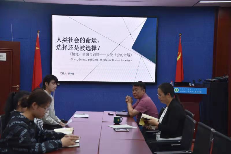 本次读书报告会是由2020级民族学二班的侯宇健同学分享贾雷德·戴蒙德的著作《枪炮、细菌与钢铁:人类社会的命运》。他将本次汇报分成了作者介绍与学术背景、内容梗概和主题探索与自我反思三部分。侯宇健同学分享了自己读完本书后的一些思考,他认为,没有任何一个理论或框架可以解释所有的历史,理解历史必须学习各种学科的各种理论与框架。
