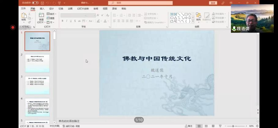 10月26日下午的“佛学文化研究院‘智慧甘露’系列讲座”由满达副院长主持,主讲人魏道儒先生做了题为“佛教与中国传统文化”的精彩讲座。在线参加此次学术活动的包括beat365官网20级民族学本科生和宗教学研究生,此外还有beat365官网与音乐学院、学报编辑部的10余位老师。