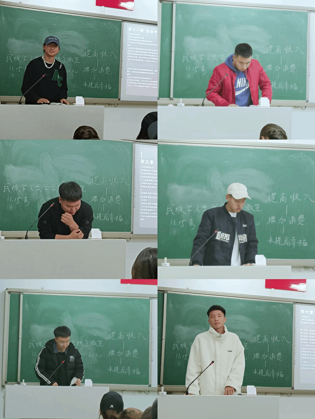 包吐气组长首先对《社会工作理论与方法》进行了整体框架性的介绍,相继特目其乐图、其额格力格、包苏乐德、吴忠凯、乌云苏都等同学对章节内容进行了具体介绍。包吐气为首的同学们用清晰的理论脉络,详尽的案例分析,展示了社会工作主要理论流派的概念框架与实践原则,主要包括社会系统理论、生态视角、优势视角、赋权和语言、社会建构主义、女性主义理论和实践、人文视角、动机式访谈、认知行为疗法、寻解治疗、任务中心模式和危机干预等。指导老师胡那苏图也在其讲解的过程中分享了自己的看法并加以指导。