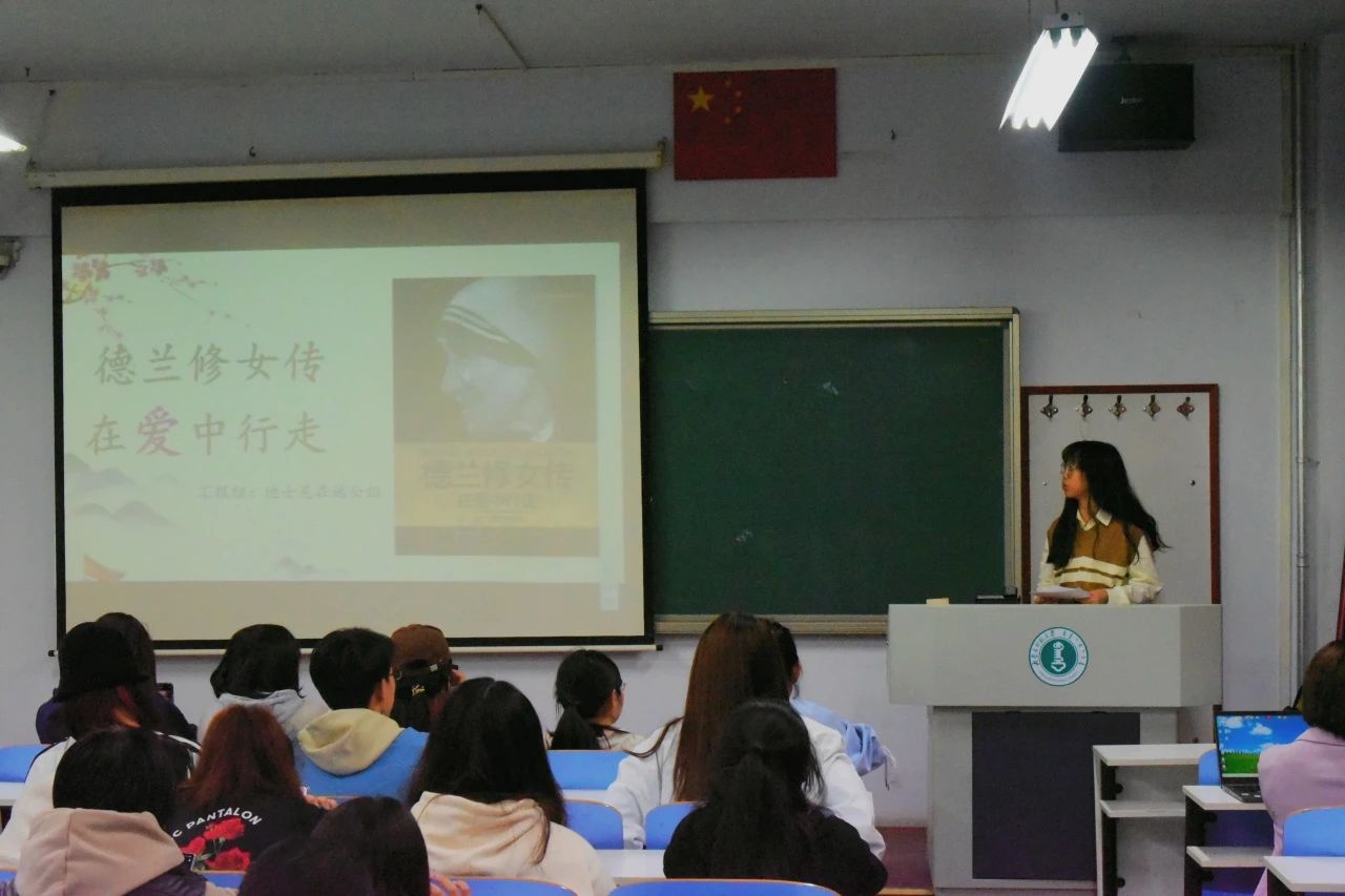 在田友丽老师的指导下,7位领读者激情讲述着德兰修女一生的传奇故事,按照时间线索,与同学们一同见证这一伟大人物的成长历程。