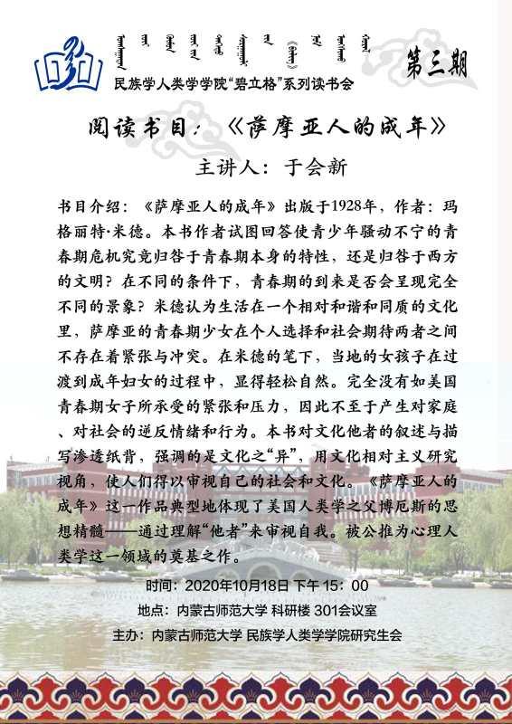 “碧立格”系列读书会博士研究生第3期预告