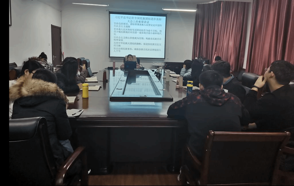 为贯彻落实十九大习近平新时代中国特色社会主义民族思想,进一步促进马克思民族思想中国化进程,beat365英国官网网站于2019年11月24日下午三点在科研楼301举办了第四期读书会。本次读书会由麦丽苏老师主持,李丽萍老师带大家深入解读了“习近平新时代中国特色社会主义民族思想”,全院师生的积极参与,收益良多。
