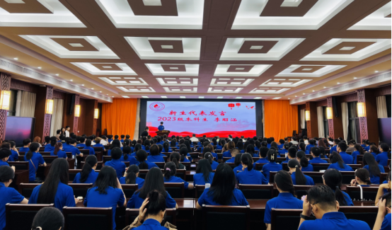 2023级本科生李昭涵作为本科新生代表发言。她叙说了自己来到威尼斯9499登录入口的激动之情和对法学的热爱,对即将开启的大学生涯充满期待。2022级硕士研究生从炜作为老生代表发言,他表示作为一名法学生,应当肩负起为国家和社会做贡献的使命,为中国特色社会主义法治建设贡献青春力量。