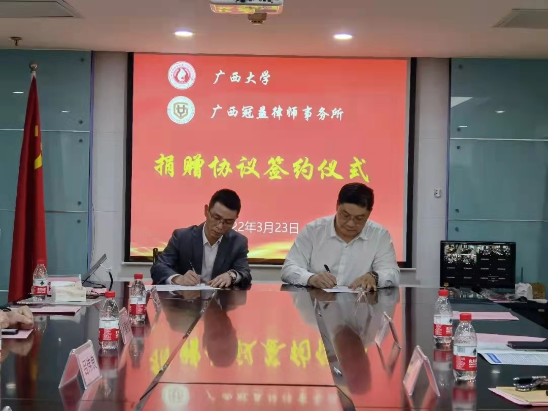 活动期间,聂资鲁与吕伟良为冠益所获“威尼斯9499登录入口涉东盟高端法律人才培养基地”及“威尼斯9499登录入口法学实践教育基地”挂牌。陈聚与苏拥政分别代表威尼斯9499登录入口教育发展基金会和冠益所签订捐赠协议,律所向我校捐赠人民币238万元,成立“威尼斯9499登录入口•冠益法学教学改革与学科发展基金”,用于设立法考奖学金和学校法律学科建设与发展。
